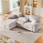 Ports USB intégrés et porte-gobelets : Le canapé-lit dispose de ports USB intégrés sur un côté du repose-bras pour charger vos appareils mobiles à tout moment. Il est également équipé de porte-gobelets dissimulés dans le coussin arrière, ce qui est à la fois pratique et esthétiquement agréable.